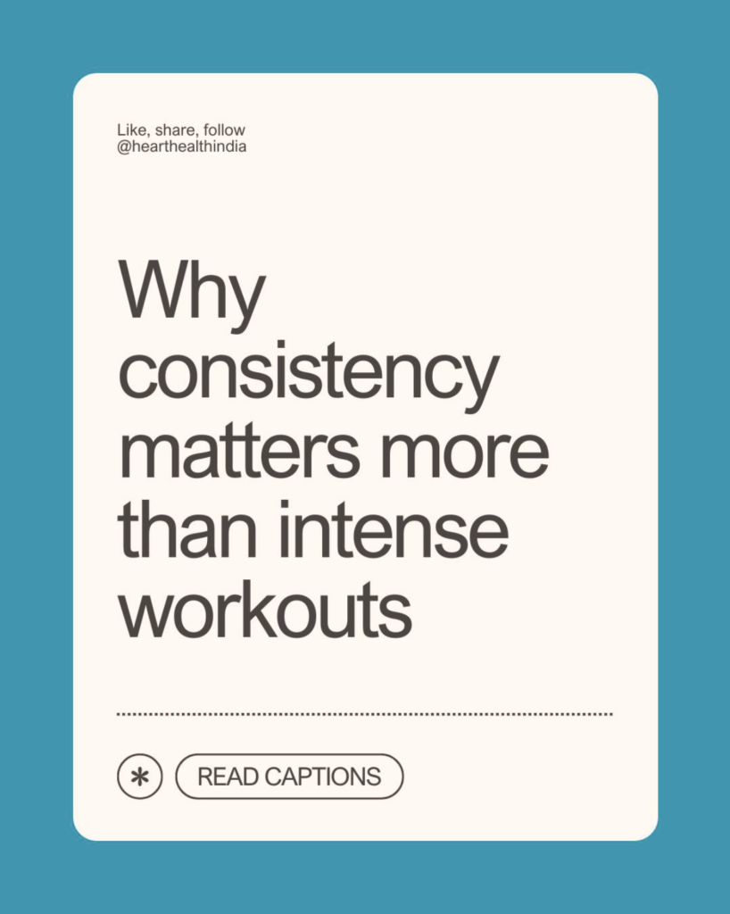 Most people assume heart health comes from pushing hard: long runs on weekends, intense gym days, or sudden bursts of motivation.But the cardiovascular system doesn’t respond to intensity — it responds to repetition, predictability, and steady stress adaptation. Here’s the physiological breakdown. 1. The heart improves through regular, moderate load When you exercise consistently, your heart experiences a stable pattern of increased demand.This triggers adaptations: improved stroke volume, better endothelial function, more efficient oxygen use, and smoother BP regulation.These changes happen only when the stimulus repeats — not when it shocks. 2. Intense, irregular workouts create stress, not resilience Sporadic high-intensity sessions spike cortisol, raise heart rate variability in the wrong direction, and can temporarily elevate BP.For many busy professionals, the body perceives these workouts as acute stress events, not health routines.They burn calories, yes — but they don’t build cardiovascular stability. 3. Consistency improves metabolic markers far more reliably Daily or near-daily moderate activity improves insulin sensitivity, reduces triglycerides, and lowers resting BP.Even 20–30 minutes of brisk walking or strength training done regularly outperforms two hours of intense exercise once a week. 4. Habit frequency is stronger than habit intensity The nervous system, vascular system, and muscles thrive on repeat signals.Think of it as teaching your heart a rhythm — a pattern it can rely on.That rhythm is built through consistency, not intensity. The simplest formula Move daily.Mix moderate cardio + strength.Keep the sessions sustainable.Let the heart learn your routine — and respond with long-term protection.