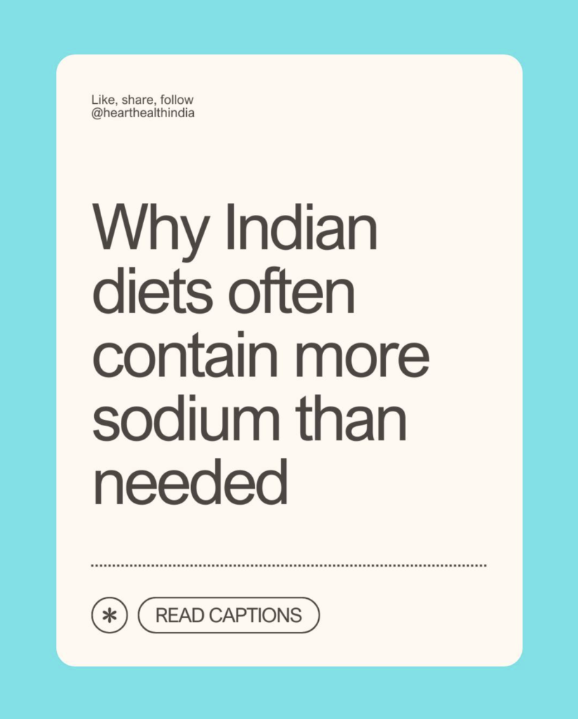 Most people assume India’s home-cooked meals are automatically healthier than Western fast food.But when it comes to sodium, our everyday eating patterns quietly exceed recommended limits — not because we eat “junk,” but because salt is built into our culture, cooking methods, and food habits. Here’s the physiological and culinary breakdown. 1. Salt is layered into multiple components of a single meal Unlike cuisines where salt is added once, Indian meals often contain salt in: the dough the dal the sabzi the raita the chutney the papad the pickle One meal = 5–6 salted components.The total sodium load rises even when each item tastes “normal.” 2. Preservation-driven foods are part of tradition Pickles, papads, chutneys, achaars, murabba, and dried snacks were historically made to last months — and salt was the primary preservative.Today, we eat them for taste, but the sodium levels remain extremely high. 3. Packaged and ready-made foods are now unavoidable Rotis from outside, bread, bakery items, snack mixes, ready gravies, instant noodles, and frozen parathas contain large amounts of sodium to enhance flavor and shelf life.Most people don’t associate these foods with “salt,” so the intake goes unnoticed. 4. Restaurant food uses 2–3x more salt than home cooking To ensure consistency and strong flavour, hotels and cloud kitchens use significantly higher sodium in gravies, marinades, and tandoor preparations.Regular eating out amplifies BP risk even in otherwise “healthy” individuals. 5. Taste adaptation hides the problem Many Indians are desensitized to high salt because the palate adapts over time.What tastes “normal” may already be excessive by physiological standards. The correction Awareness → palate resetting → fewer salty add-ons → fresh ingredients → reading labels.Reducing sodium doesn’t remove flavour — it restores balance the heart urgently needs.